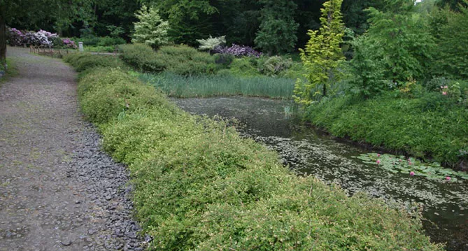 На склонах кустарник красиво смотрится вместе с небольшим кизильником, горной сосной или почвопокровными розами. Также растение подходит в качестве бордюра вдоль пешеходных маршрутов, где можно легко регулировать его высоту.