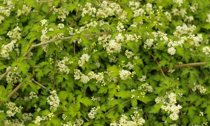Стефанандра «Криспа» – фото цветущего кустарника
