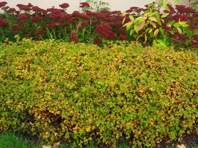 Кустарник быстро и эффективно разрастается на пустых местах. Он отлично выглядит в большой группе в сочетании с вечнозелеными растениями, такими как бадан, низкими сортами барбариса контрастного цвета или зелеными кизильниками.