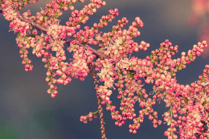 Тамарикс мелкоцветковый (Tamarix parviflora) – высокий кустарник, достигающий 4 м в высоту. Состоит из тонких, многочисленных побегов, покрытых мелкими листьями. Период цветения – весна. Цветки бледно-розовые, образуют симпатичные соцветия. Листья мелкие, чешуйчатые. Цветы появляются весной на побегах прошлого года, поэтому профилактически обрезать куст не рекомендуется.