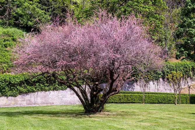 - Привитый на ствол – рекомендуется для небольшого сада. Красиво смотрится со свисающими побегами, покрытыми миллионами цветов.