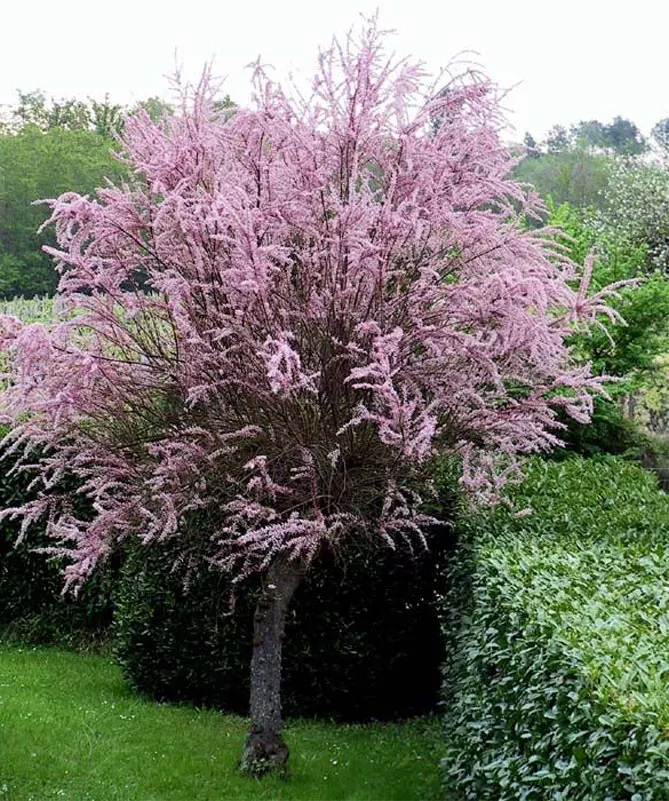 Некоторые виды тамарикса зимой остаются зелеными, что дополнительно украсит сад в белые и серые дни.
