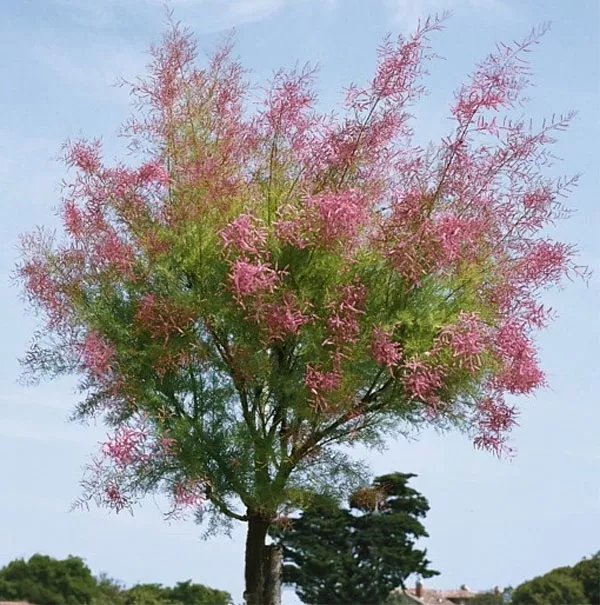 Гребенщик африканский (Tamarix africana) вырастает до 2-5 м в высоту. Розовые цветы развиваются в мае. Листья чешуйчатые, опадающие на зиму.