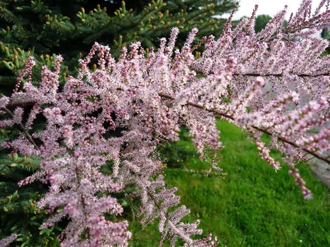 Кустарник тамарикс лучше сажать весной или осенью. Особенно эффектно он выглядит в саду в роли солиста на газоне.
