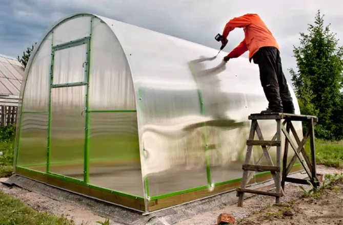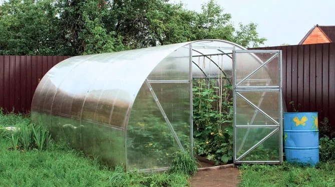 Теплица, изготовленная из поликарбоната, оказывается более долговечной и зачастую более эстетичной, чем туннель из пленки или модель из стекла