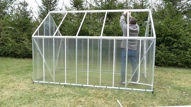 Строительство легкой небольшой теплицы из алюминия не требует фундаментов, особенно если это временное сооружение. Несмотря ни на что, не забудьте правильно прикрепить раму к земле, чтобы она была устойчивой и безопасной.