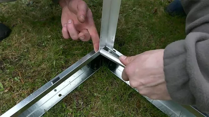 - При помощи отвертки, саморезов и пластиковых уголков собираем фундамент.