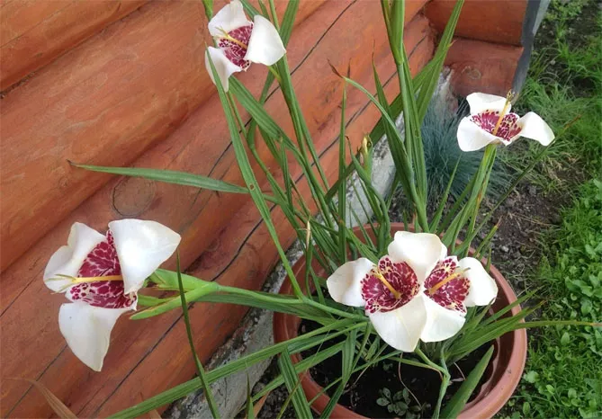Тигридию можно выращивать в горшках. Она выглядит красиво, и хорошо растет на балконе, террасе. Выращивание тигридии в горшках не требует особых усилий, но следует позаботиться о надлежащем дренаже и отверстиях в контейнере, чтобы вода не застаивалась.