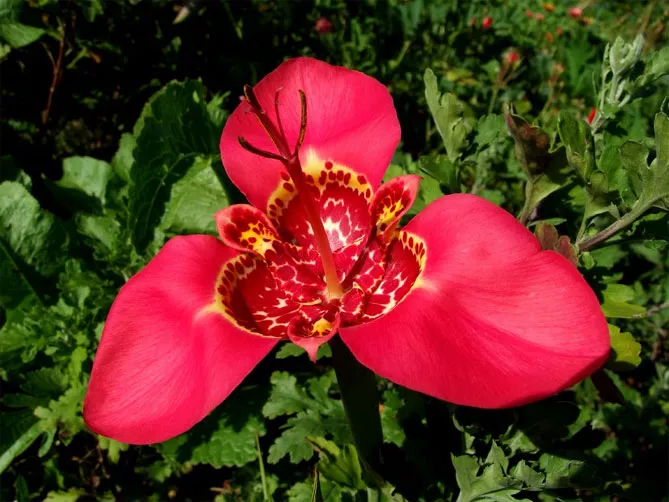 Название «тигридия» растение получило благодаря лепесткам с характерными пятнышками.