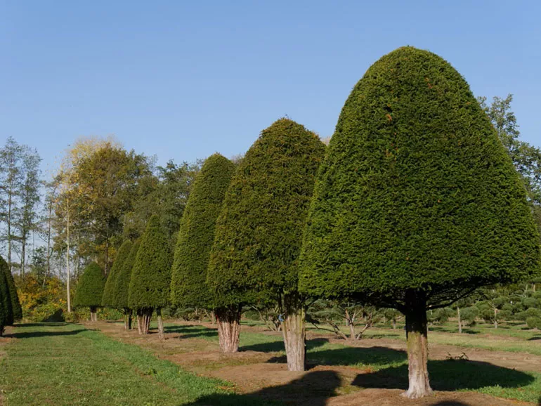 Поскольку тис растет медленно, требуется время, прежде чем он сформирует красивую живую изгородь или приобретет внушительный силуэт. Для быстрого получения хорошего эффекта отдавайте предпочтение покупке больших саженцев, а не маленьких растений в горшках.