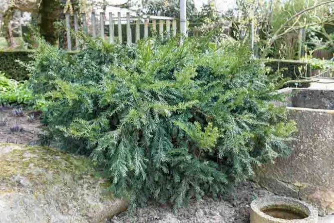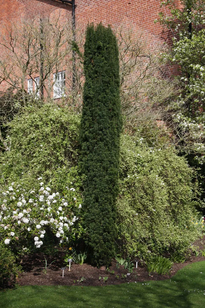Можно интегрировать тис в сад с другими кустарниками, подстриженными топиариями и клумбами с красочно цветущими многолетниками.