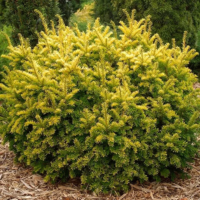Т. ягодный «Семпераурия» (Taxus baccata Semperaurea) достигает 2,75 м, образует густой куст среднего размера, круглый год имеет превосходную золотисто-желтую листву. Сажать его можно в полутени, чтобы подчеркнуть светлую листву.