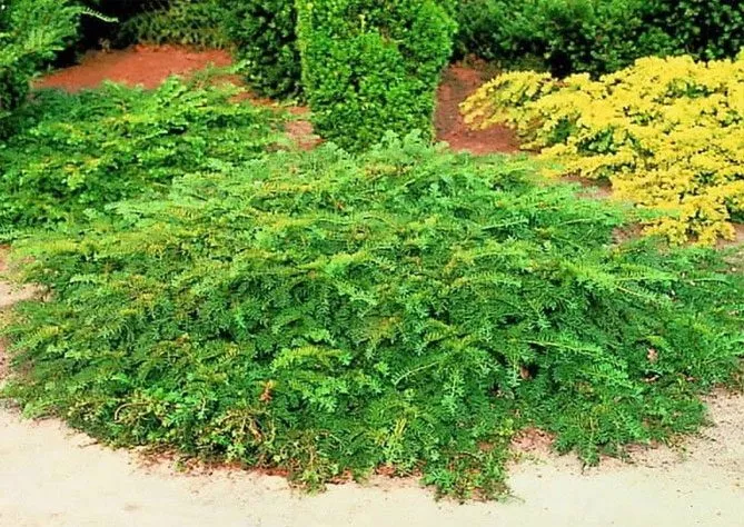Фото. Как выглядит тис ягодный в ландшафтном дизайне – колоновидные и стелющиеся сорта