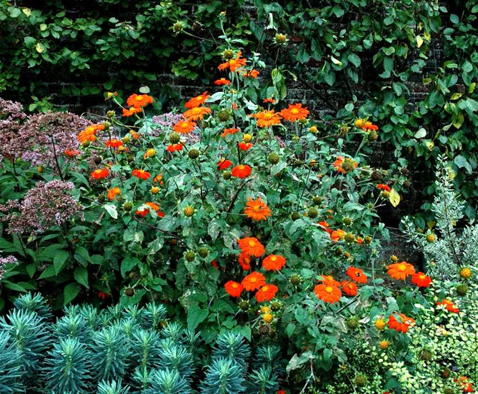 Титония станет отличным украшением сада. Это очень декоративное растение, привлекающее в сад целые стаи бабочек. Благодаря высоте, ее можно размещать, как фон, впереди высаживая менее высокие виды.