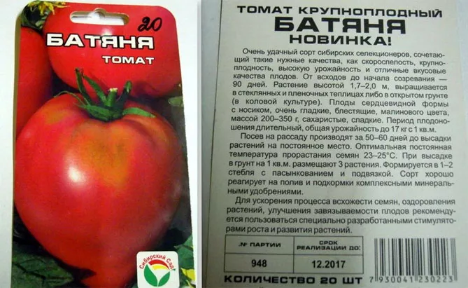 На рынке семян сорт Батяня представляет фирма «Сибирский сад». Поскольку эти отличные томаты не являются гибридным сортом, то в дальнейшем огородники могут собирать семена и размножать помидоры самостоятельно. Посев семян следует производить за 60-65 дней до планируемого времени высадки в грунт.