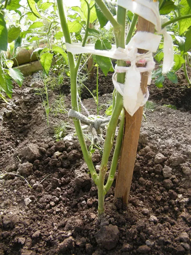Растения свободно подвязывают к колышкам или шпалере с помощью верёвки из негниющего материла. Колышки для подвязывания вставляют сразу при посадке, более поздняя установка повреждает корни.