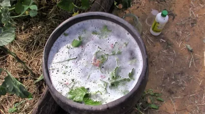 Готовить настой травы можно в любой таре – ведре, выварке, бочке любого объема. Металлические емкости не хуже пластиковых – металл окисляется и насыщает закваску железом. Некоторые огородники умудряются использовать деревянные ящики, вставляя внутрь прочный целлофановый пакет.