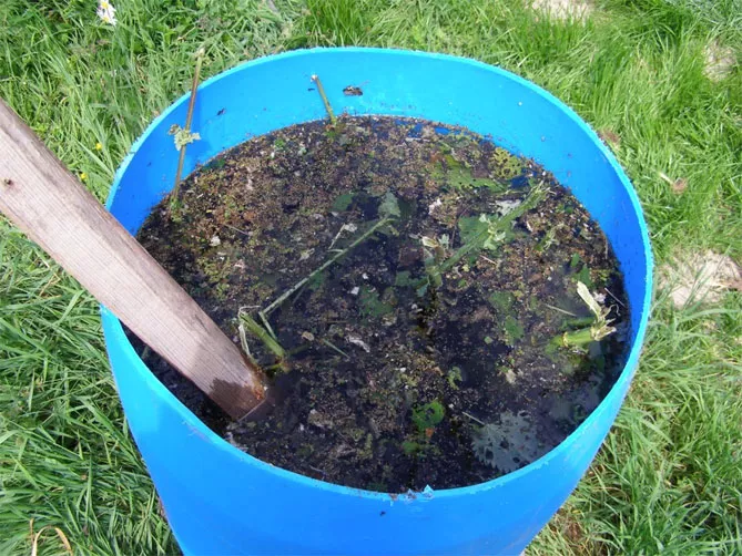 Когда настой готовится, запах стоит впечатляющий. На большом участке емкость можно поставить подальше от жилья и мест отдыха. Если такой возможности нет, вонь уничтожают ЭМ-препаратами, например, Байкалом. Их добавляют в настои согласно инструкции – кроме уничтожения неприятного запаха, удобрение станет более эффективным.