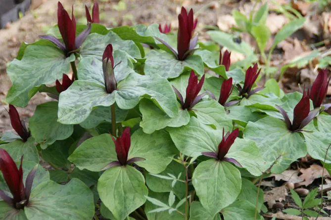 Можно посадить триллиумы в кислую почву с другими многолетниками, которые любят кислые субстраты: