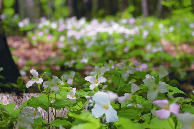 Чтобы создать сцену, похожую на опушку леса, комбинируйте триллиумы с: