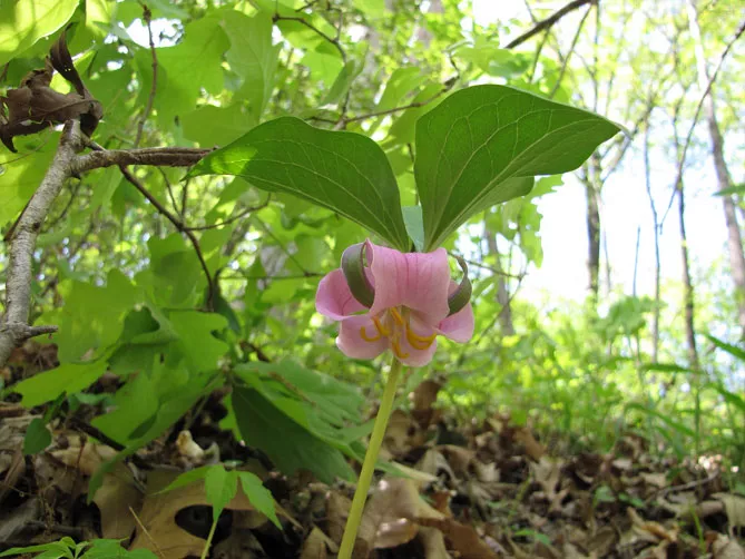Немного отличается окраской цветов вид триллиум Кейтсби (Trillium catesbaei), родом из юго-востока США. Цветки от белого до более или менее насыщенно-розового, иногда почти пурпурного цвета.