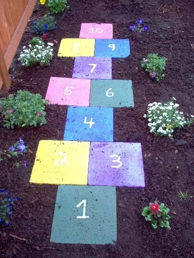 Если нет желания экспериментировать с бетоном, можно купить готовые, простые, серые бетонные квадратные плиты и украсить их декоративно при помощи краски в баллончиках.