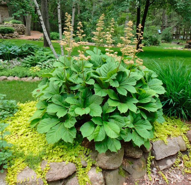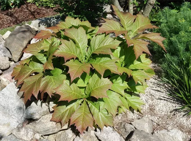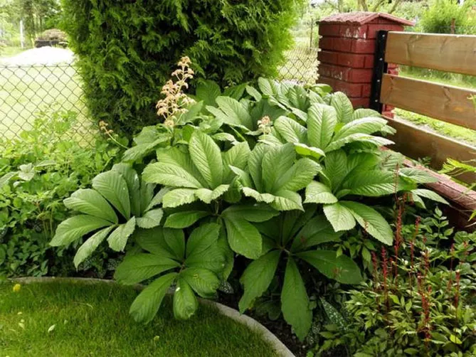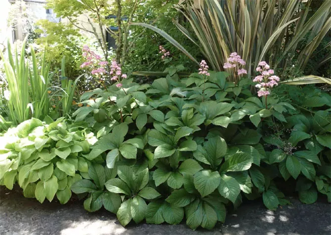 Внешний вид каштанолистной роджерсии зависит от позиции в саду: