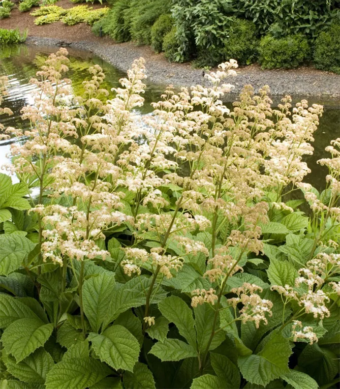 Это поразительное многолетнее растение с контрастными формами не подвержено ни болезням, ни вредителям. Когда оно цветет, выглядит как сложная работа ювелира. Широкая крона листьев и оригинальный внешний вид делают роджерсию интересным предложением для многолетних цветников в современных и романтических садах.