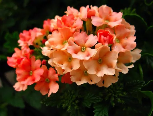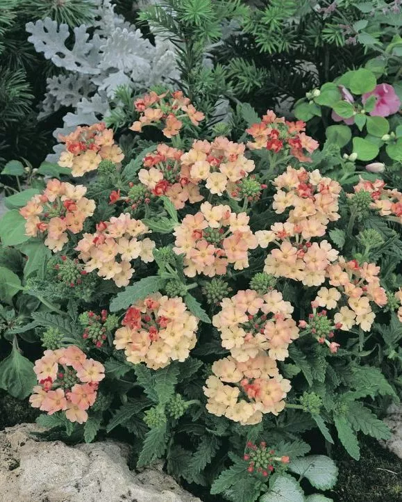 Цветы вербены расцветают с июля, цветут до поздней осени. Соцветия большие, плотные, принимают различные цвета: