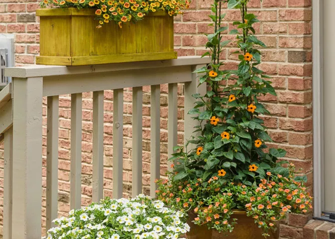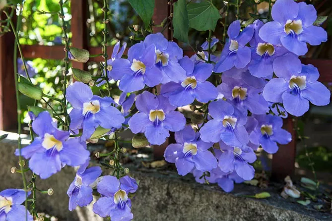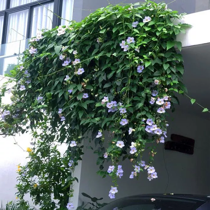 Тунбергию можно использовать на тихом балконе или террасе, где обвивающие перила побеги создают красивый зеленый уголок со здоровым микроклиматом.