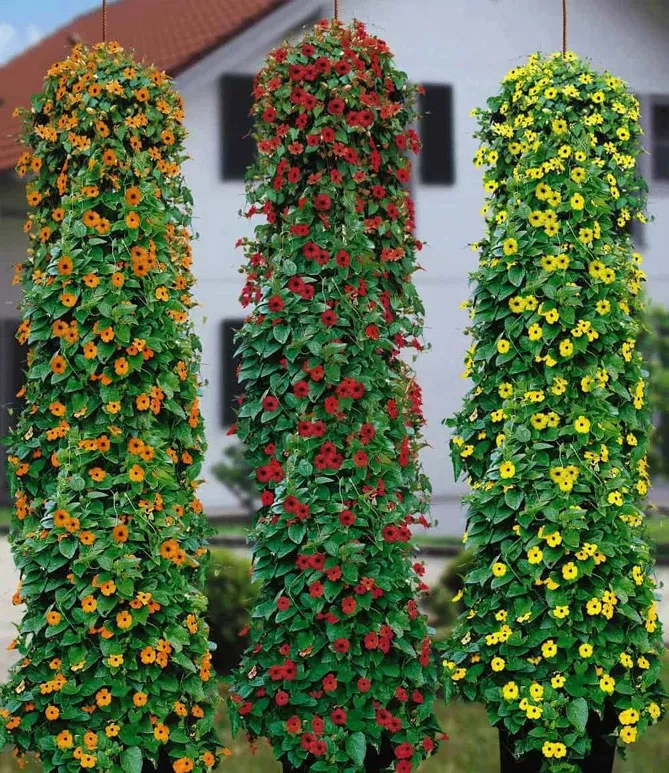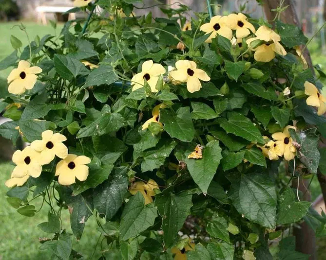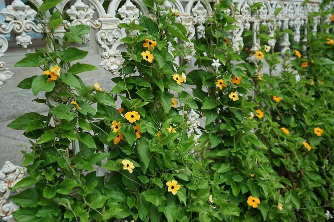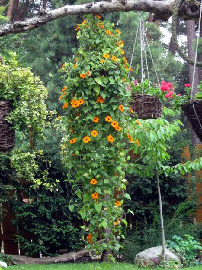 Чтобы тунбергия обвивала опоры стоит сажать ее у беседок, пергол. Если она растет просто в горшке на балконе, то будет красиво свешиваться вниз.