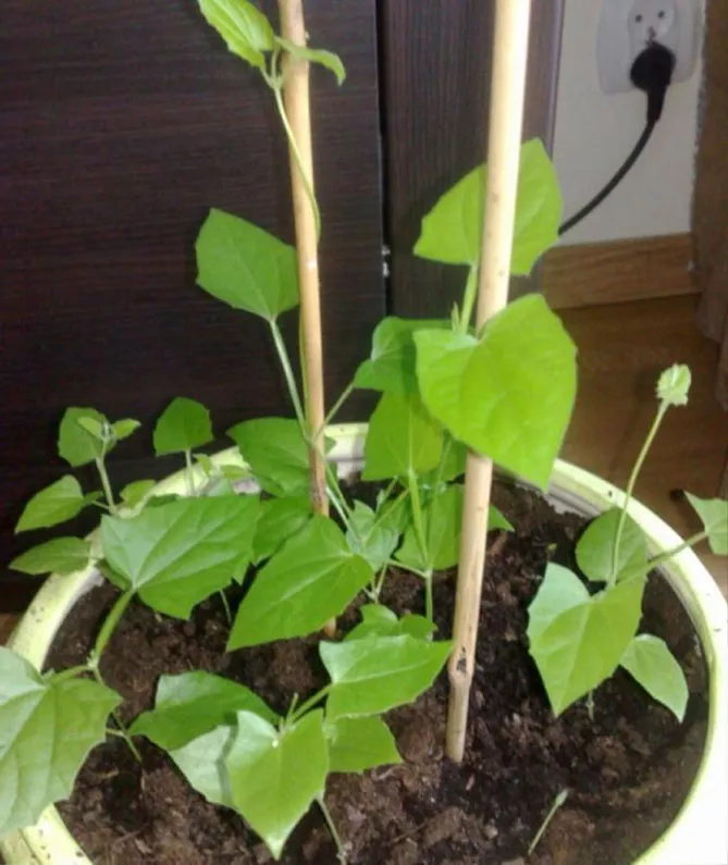 В горшок необходимо вставить 3 опоры в виде палатки. Со временем молодые растения схватятся за опоры и начнут подниматься вверх.