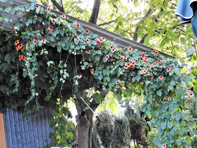Тунбергия хорошо переносит обрезку, что позволяет регулировать длину побегов.