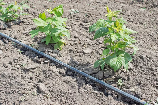 Орошение необходимо, особенно на почвах с высокой степенью водопроницаемости. Малина обладает мелкой корневой системой, расположенной в верхних слоях почвы, поэтому ей необходим частый полив.