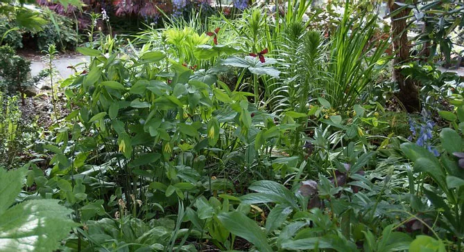 Поскольку увулярия является тенелюбивым растением, она идеально подойдет для выращивания под кронами деревьев, чтобы создать естественную атмосферу в компании других тенелюбивых и теневыносливых растений. Для этого можно использовать: