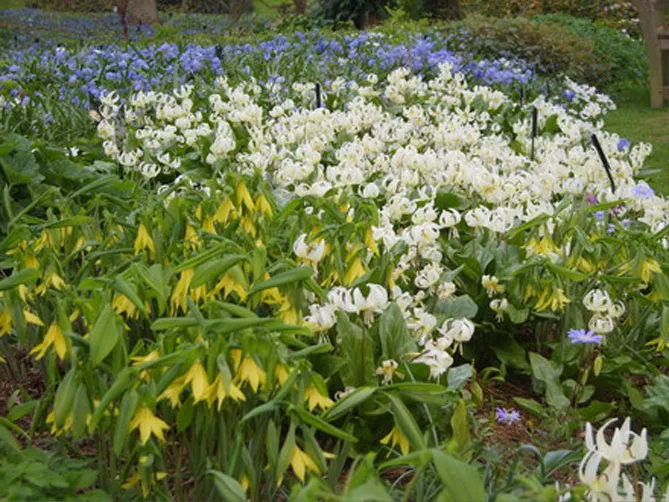 Увулярия в природе растет в подлеске, любит тень или полутень. Можно посадить ее у подножия деревьев или кустарников в компании с другими небольшими теневыносливыми многолетниками (хосты, папоротники, бруннеры, эпимедиумы, триллиумы), чтобы создать очень естественную композицию.
