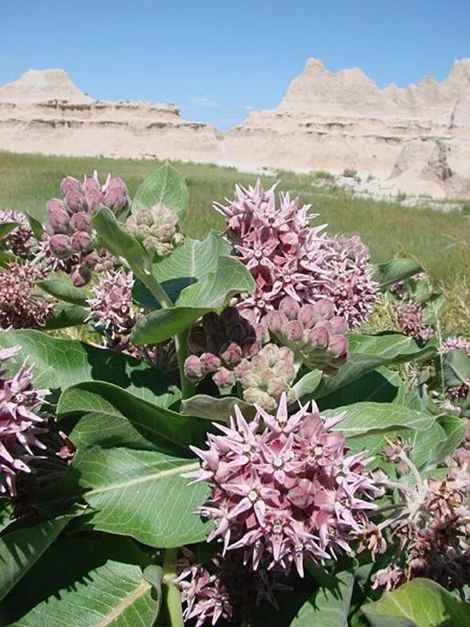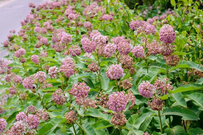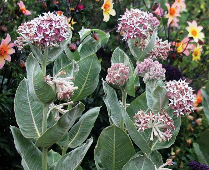 Многолетнее, долгоживущее растение ваточник сирийский (Asclepias syriaca) индейцы использовали, как натуральное лекарство, пищу и материал для изготовления веревок и ткани. Он образует прямостоячий толстый стебель, достигающий 1,5-1,8 м. Стебель опушен, покрыт крупными эллиптическими листьями. Листовые пластинки крупные (до 20 см длиной), блестящие, с отчетливым покраснением. Цветет с июня по август. Цветки розовые, собраны в шаровидные соцветия, обладают интенсивным приятным ароматом. Украшение асклепиаса сирийского – колючие плоды – коробочки с пушистыми семенами.