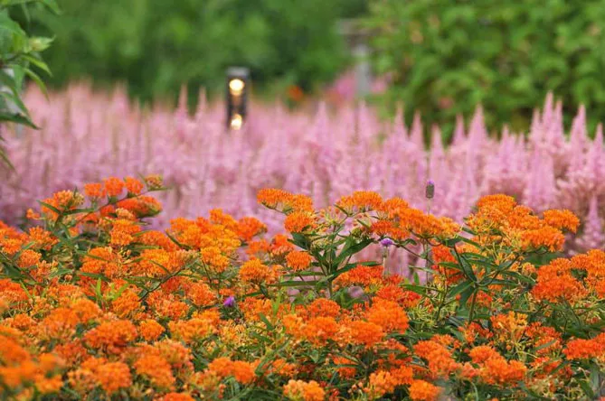 Эффектный многолетник, родом из Северной Америки – ваточник красивый (Аsclepias speciosa) особенно бросается в глаза во время цветения, с июля по сентябрь верхушки стеблей украшают красивые плотные округлые зонтики. Соцветия состоят из маленьких пудрово-розовых цветков в форме звезд, завораживающих утонченной красотой и чудесным ароматом.