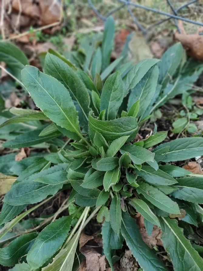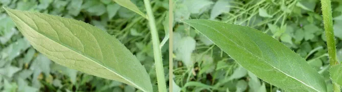 На высоких, хорошо разветвленных, опушенных стеблях очередно располагаются крупные гладкие листья длиной 10-25 см, ланцетовидные, сидячие, с зубчатыми краями. Они блестящие, более многочисленные у основания, имеют цвет от темно-зеленого до зеленого. Некоторые сорта («Вариегата») отличаются пестрой листвой – зеленой с желтым оттенком.