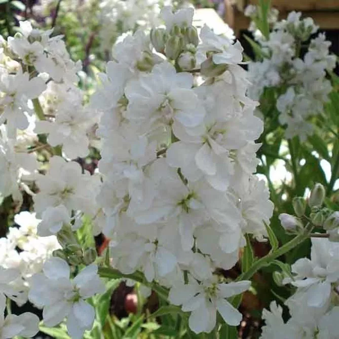 Особенно изящные цветы распускаются на концах стеблей с апреля по июль, в зависимости от климата. Цветки, образованные крестом из 4 лепестков, диаметром 2-4 см, объединены в легкие и эффектные соцветия-метелки. Чаще всего цветки простые, некоторые сорта отличаются полумахровыми или полностью махровыми цветками, которые зачастую более ароматны, чем простые сорта. Они выпускают букет из 6 тычинок.