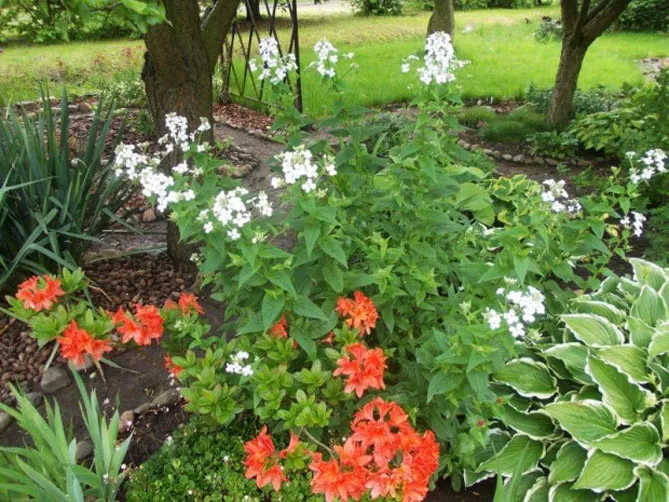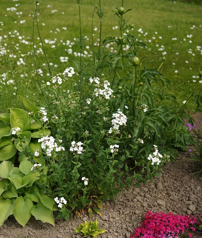 В миксбордере рядом с домом, чтобы воспользоваться восхитительным ароматом ночной фиалки можно сочетать ее с:
