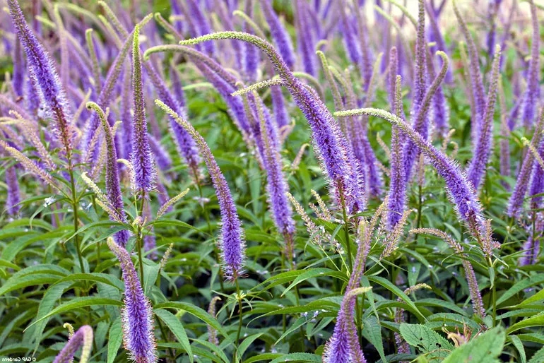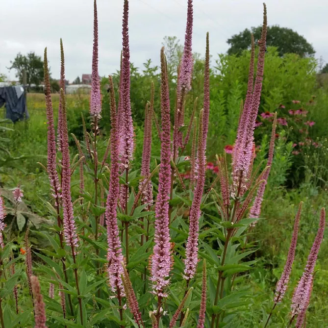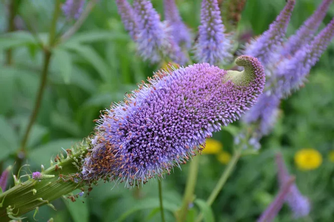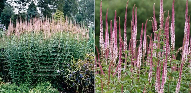 В диких миксбордерах вероникаструм образует элегантные скопления среди многолетников, цветущих летом: