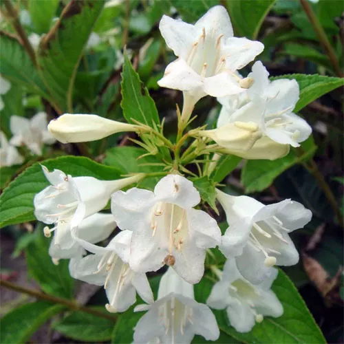 В наших садах преобладают многочисленные гибридные сорта кустарников, в основном полученные в результате скрещивания вида Weigela florida с другими. Вот несколько таких сортов.