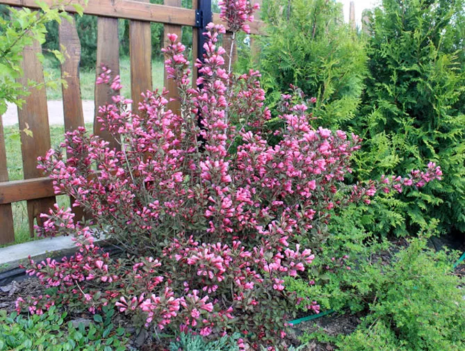 Если вейгела высажена не как живая изгородь или растение в горшке, хорошую компанию ей составят форзиции, жасмин, кольквиция.