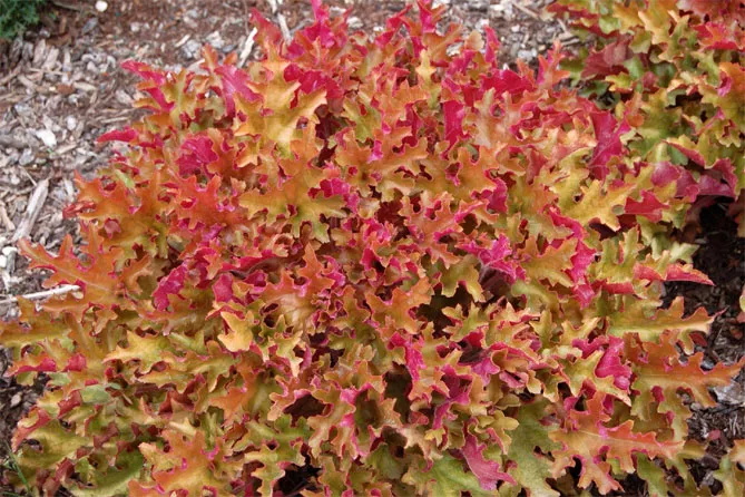 Сорт гейхеры с уникальной окраской листьев. Края листовых пластин волнистые, сильно изрезанные. Весной при отрастании нежно-розовые, затем в процессе вегетации постепенно приобретают насыщенный бронзовый оттенок. Высота растений не превышает 25 см.
