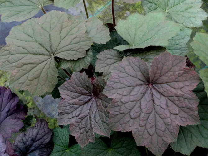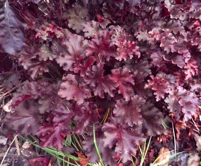 Шоколадная гейхера, сохраняет насыщенную окраску вплоть до самых заморозков. Листовые пластины крупные, с резными краями. Образует очень крупные кусты, поэтому может использоваться для одиночных посадок. Зимостойкость хорошая.