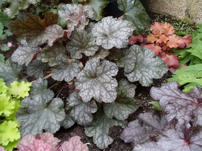 Гейхера, она же хеухера – широко распространенный травянистый многолетник родом из Северной Америки. Ценится за ярко окрашенные листья и нетребовательность к условиям выращивания. В ландшафтном дизайне используется для создания клумб, миксбордеров и в качестве яркого акцента на альпийских горках. Ниже подробно рассмотрены самые распространенные виды и сорта гейхер с названием и фото.