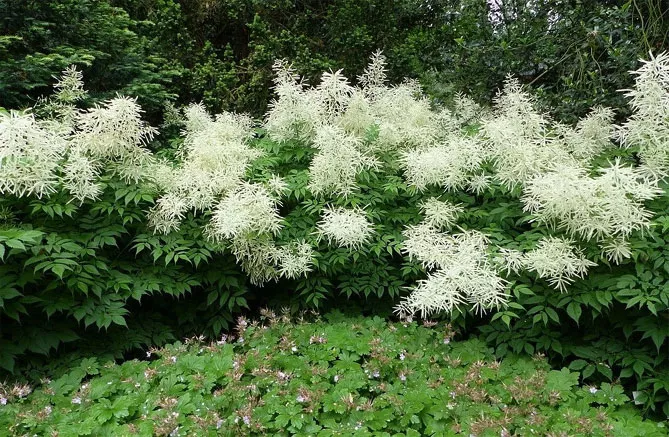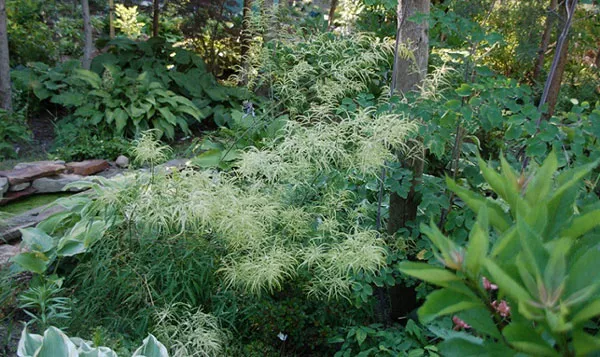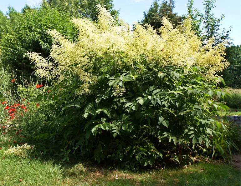 Это долгоживущее многолетнее растение с пышными зелеными листьями, декоративными соцветиями и внушительной кроной высотой до двух метров. В саду предпочитает затененные участки, например, под большими деревьями. Кремово-белые, развевающиеся соцветия станут интересным украшением сада, они также подойдут для срезки и сушки цветов. Мы расскажем, как выращивать кустарник волжанка – посадка и уход в открытом грунте, способы размножения, представим описания сортов и видов с фото.
