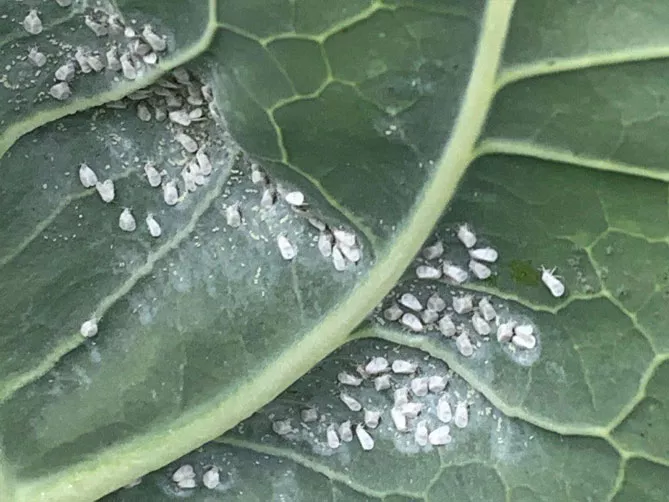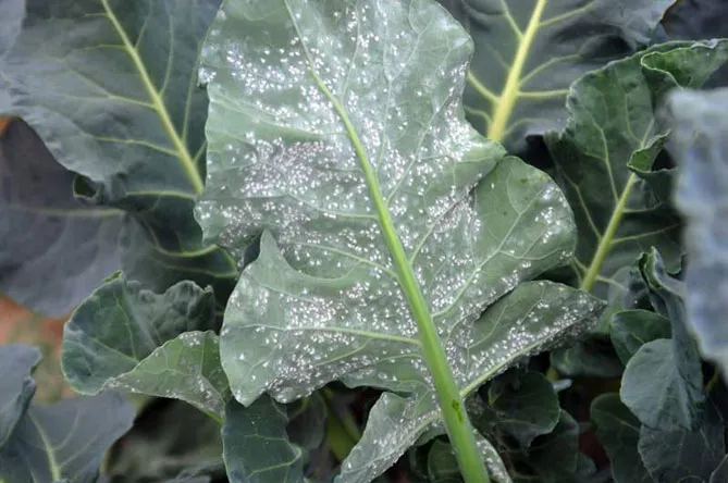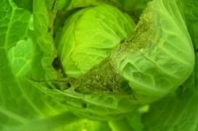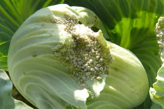 - Brevicoryne brassicae вызывает деформацию и порозовение листьев капусты.