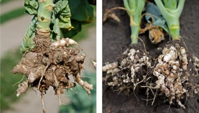 - Пораженная корневая система становится основным источником заражения почвы. Растения, подвергшиеся заражению на более поздней стадии роста, могут развить вторичную корневую систему (так как обладают способностью регенерировать корни, что позволяет капусте выжить и даже дать урожай).